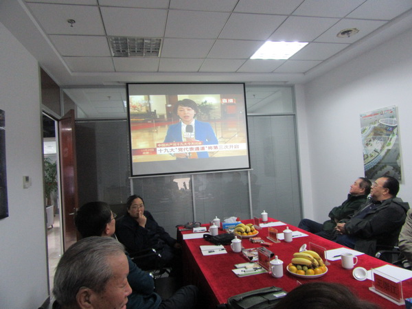 10月24日上午,市老科协领导程友新,市科协副主席王崇江以及老科协孙志周、杨柏林、盖健、曲修珂和秘书处傅邦文、应中在青岛市中央商务区调研期间,集体收看了党的十九大闭幕新闻。