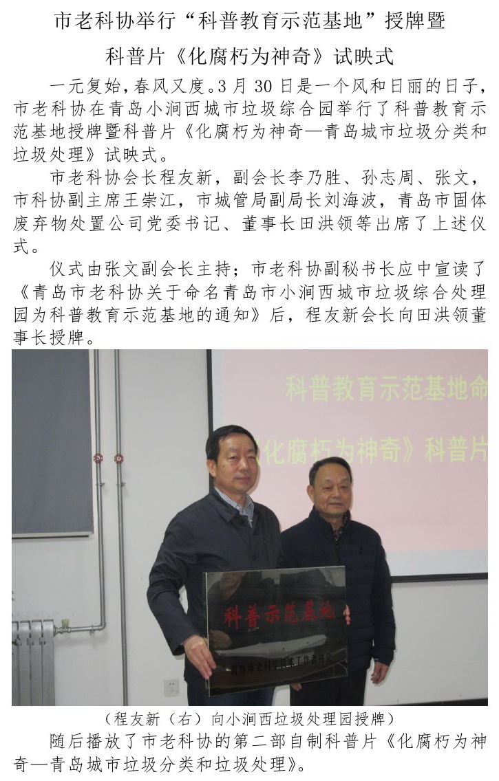 青岛市老科学技术工作者协会(简称:青岛市老科协);本协会是以我市离退休的老科技工作者和老科技工作者团体为主体自愿结成并依法登记成立的非营利性、全市性法人社会团体,是青岛市老科技工作者的群众组织,是青岛市科学技术协会和老龄事业的组成部分,是党和政府联系老科技工作者的桥梁和纽带。