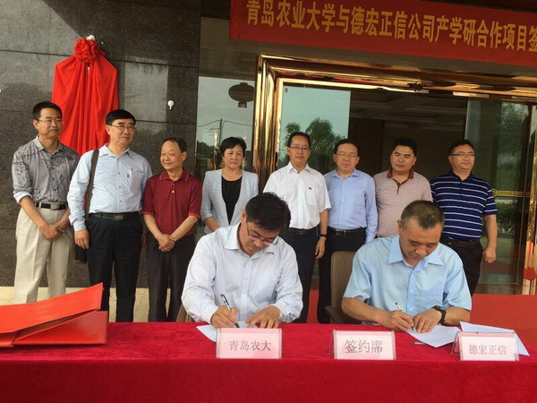 5月24日,由市老科协牵头组织的“产学研结合”大学与企业对接的“农业新品种科研新品种基地”会议在德宏陇川举行,青岛市老科协程友新会长、青岛农业大学杨同毅副校长、德宏州陇川县委县政府主要领导出席了会议;同时举行了青岛农业大学与德宏正信实业股份有限公司产学研合作项目签约仪式,协议内容包括共同研发筛选桑树优良品牌并开展育苗;研究筛选稀有信用苗品种;桑技菌包奍木耳和菌菇;联合开发科研项目;人才培养及培训等。程友新会长并为双方在陇川的“农业科研新品种基地”揭牌。同时召开了双方下一步开展“重点新品种”研发方向的研讨会。仪式结束后,青岛农业大学带回了300棵桑树新品种苗,启动新品种培育实验。