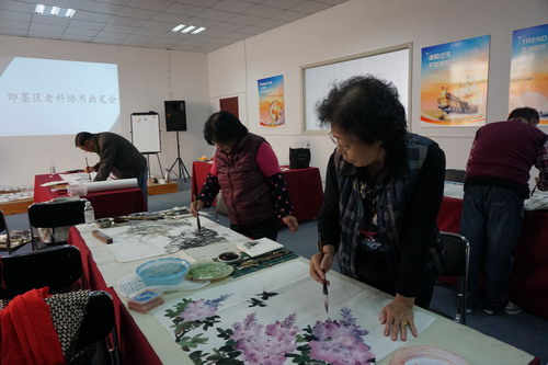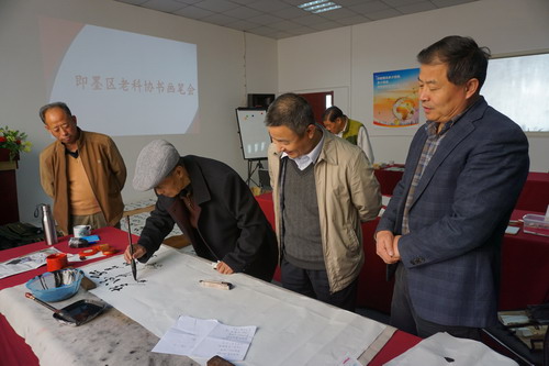 近日,即墨区老科协书画院深入到青岛晨之晖信息服务有限公司举行了送文化进企业书画笔会。来自即墨区老科协书画院的8名书画爱好者参加了活动。即墨区科协主席王宏志参加此次活动。