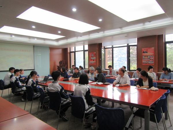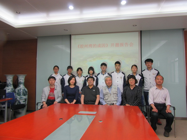 在开题仪式上,学校课题组组长辛炜同学介绍了课题内容和进展计划;市老科协海洋专业委员会主任董罗海宣读了《胶州湾的成因》课题立项通知书,并对这次模拟课题研究活动提出来详尽的具体要求。