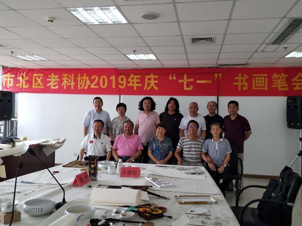 为庆祝中国共产党成立98周年,在党的生日前夕,市北区老科技工作者协会与区科协联手共同举办了庆“七.一”书画笔会。6月27日,我们邀请了单继宏、张景等十位岛城的书画家与老科协理事聚集一堂,利用半天的时间,在市北区老年活动中心13楼会议室,现场行书作画。大家挥毫泼墨,砌磋技艺、四十多幅书画作品刚柔并济或奔放自如,从不同艺术视角庆祝中国共产党建党98周年。 区老科协、区科协的领导以及全体工作人员参加了此次书画笔会活动。