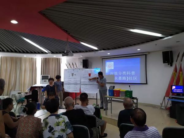 9月11日市南区永嘉路社区容纳百人的会议室里座无虚席,不断传来阵阵热烈的掌声。市南区老科协社科委在八大湖街道永嘉路社区进行的垃圾分类科普知识宣传互动活动正在热火朝天地进行中。 老科协社科委的理事们声情并茂的讲解,深深吸引大家的目光,清晰简洁的提问引起大家浓厚的兴趣和积极回应。由居主任和楼组长们分成的6个学习小组通过简短的讨论,把收获的知识总结在答题纸上,之后又把兴趣转移到动手活动上来,剪绿、兰、灰、红四色小垃圾桶、识别和投放垃圾分类科普知识卡片。大家通过讲一讲、议一议、剪一剪、分一分,学习了知识,分享了收获,掌握了科普宣传方法,为带动居民一起分打下基础。最后一个环节是有奖知识问答,参会人员积极踊跃发言,十个垃圾分类问题的知晓率得到了满堂彩。楼长王奶奶饶有兴致地说:垃圾分一分,永嘉更美丽,这样学习好,知识记得牢。 整个活动精彩纷呈,气氛热烈。在参与互动中大家对垃圾分类意义有了进一步的了解, 切实体会到 垃圾分类与每个人的生活都息息相关,是一个以小见大,利国利民的大事。