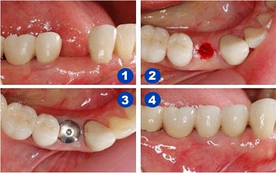 2、植入种植体(人工牙根),手术约15-30分钟,7天后拆线; 术后佩戴临时活动假牙,基本正常饮食;约3个月待种植体与牙槽骨融合后复诊。
