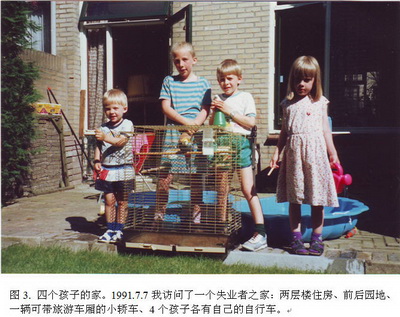 我的日记没有记下,我怎么和一个失业者之家来往颇多。失业者希门尼兹(Jimenez)的丈夫安东尼(Andone)是一个小教堂的牧师,没有固定收入。1991年7月7日,安东尼开车拉我去访问他们的新家。那是被草坪和树林环绕的一排两层楼房,是“穷人家”集中地。各家有各自的前后园地和仓库。除了失业津贴外,每个孩子都有补贴。养孩子有收入,所以,我对留学生说他们是“养孩子专业户”。我离开荷兰到比利时后,听说他们又有了第五个孩子!朋友们和我都笑了。他们的小轿车可以拖一节旅游车厢(或称“活动住房”)。有时,他们开车,全家住在上面,长途跋涉,去西班牙看望孩子们的祖父祖母。