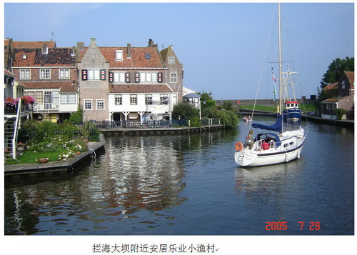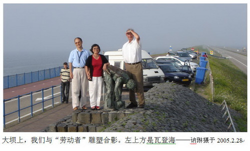(五)不见大坝,枉游荷兰 我讲过,荷兰是花的世界,郁金香与风车的王国;你若春到荷兰,而不曾去郁金香花园,那是极大的遗憾。现在,我再说:“不见大坝,枉游荷兰”。这像是常言道:“不见长城非好汉”。 荷兰,只有一千多万人口,却是欧洲人口密度最大的国家。它的正式国名Netherlands由两部分构成:“Nether”意为“低处”,“lands”是“国土”,合起来为“低洼之国”。荷兰有1/3面积的土地只高出海面l米,近1/4低于海平面,其中不少土地低于海平面6米以下。当今阿姆斯特丹国际机场就在海平面以下约4米。所以,有史以来,荷兰人民便面临被大海吞噬的危险。 在荷兰西南部,与比利时和北海相临处,是水系错综、半岛和岛屿连连的冲积三角洲。著名的莱茵河(Rhine)在此分成一些相当宽阔 的岔流,如莱克河(Lek)、瓦尔河(Waal)。还有源于法国,流经比利时的默兹河(Meuse),来到荷兰得名马斯河(Maas),也在此汇入北海。国际大港鹿特丹和三角洲地区百万人民与它相依为命。 1953年1月31日夜,荷兰人民的一场噩梦来临。潮水与风暴同时袭来,海水倒灌,淹没了荷兰5.7%的国土(14.5万公顷),1835人死亡,4.7万座房屋被摧毁。 痛定思痛,荷兰人民决心把河海水利工程推进到更高的水平。1958年正式动工拦海大坝工程,历时已经30多年,已有62个活动钢板闸门将河流出口把守。海洋风暴来临时,钢门下降,将疯狂的海水拒之于大门之外;陆地雨水过多,便开闸放水。至今,庞大的河海工程仍在继续。工程难度之大,人们把它比作“登月行动”。此外,沿阿姆斯特丹—海牙—鹿特丹一线,按照能够防御“万年一遇大灾”要求的质量标准,建起了防海堤坝。 仰慕那伟大的河海工程,我们一行4人,于1991年1月12日星期六晨8点出发,直奔三角洲。那天阴沉沉,时而毛毛雨,我们依然兴致勃勃,来到掐断了所有河口的闸门机械系统旁边细细观看,进“三角洲博览会”(Delta-Expo)了解拦海工程的历史和工作原理,以及三角洲河流、运河与海的水流水位调节枢纽工程模型的精彩演示。 另一蔚为壮观的拦海大坝建在荷兰西北部,首都阿姆斯特丹以北60公里处。1927年开工,1932年完工。坝基宽220米,高10余1米,全长32.5公里。它使荷兰海岸线缩短了300公里,大大减轻了海水对内陆的侵袭,坝内形成了一个巨大的淡水湖:艾瑟尔湖(Ijsselmeer)。新的土地从排水、烧荒、开沟、挖运河到土地能正常使用,一般需10年以上的时间。顽强的荷兰人民,向大海争来1650平方公里的土地,相当于国土面积1/5的良田。若加上前几个世纪的努力,建成堤坝的总长度己达1800公里,索回土地70万公顷。 2005年7月28日,年已66岁的豪克斯愉快地开着车,我们两对老夫妻边行边观,绕着艾瑟尔湖转了一圈。当我们正以每小时120公里的速度,在一条罕见的又平又直的公路行驶时,豪克斯既风趣又自豪地说:“你们不知道吧?我们现在是在海底行车!”——这地方叫Flevoland,以前是海底。到了拦海大坝中点,我们停车,在坝上留影、加餐、散步,领略它的伟大。 沿途,豪克斯不时把车停在小村镇,休息、进餐,或参观那洼地新村、奶酪的作坊、木鞋专卖店。具有保暖与抗潮湿功能的木鞋,还是很受欢迎的纪念品,也是荷兰人引以自豪的民间工艺,其知名度不小于世界顶尖级画家、荷兰骄子凡高的画。 我们访问了一个在景区展览石头的小村庄。钱玲笑了:石头,有什么稀罕?——是的,1991年我就已察觉到,在这个洼地之国很难见到石头。但是,要在几十公里的海面上筑起拦海大坝,石头是不可缺的。为此,荷政府曾动员了500余艘船只,不惜耗巨资从法国和葡萄牙等国进口石头。 (六)深深怀念,也有遗憾 有朋友问:对荷兰,你最怀念什么?我深深怀念荷兰的环境,自然的和人文的环境。 自1990年踏入这片土地开始,我便被她的清香、多彩和优雅所吸引。由于大西洋西风和墨西哥暖流的关照,全年阴雨天气居多。有不少荷兰人对此颇为抱怨,说这种天气“不好玩”。但是,温和多雨的天气,对植物生长十分有利,加上长时期的培育和呵护,树林、草地长得格外茂密;与之相依的奶牛、野鹅、野鸭和鸟都过着让人也羡慕的惬意生活。我从宿舍窗往外,常见有野鸭噗噗飞起,从一处水沟到另一小河。 我真服了:绿色植被是如此严实地将大地覆盖,尽管我注意观察,竟久久没有机会瞧瞧荷兰地下的土是啥样的!直到3个月后,才在一块坡地边的大树根旁边首次发现了暴露的土壤:细沙土。 也许你有点奇怪:我还怀念一种鸟,它能不断改变自己那美妙的鸣声。我在荷兰、比利时多次遇到它,并想确定它到底有多少种鸣声。我的方法是:默默记住它的一种鸣声模式,与后面的鸣声逐一比较。难以置信的是,每次持续了20~30分钟,也没有发现重复。1992年5月16日,在巴黎迪斯尼乐园的鸟馆里,我最后一次听到这优美的鸣唱,但那是录音。回国后,我向老伴描述了它的外形,她说那是画眉。但是,我们在青岛养鸟人那里听到的画眉鸣声至多有3~4种模式。为什么?北宋时大文学家欧阳修的一首《画眉诗》给出了答案: 百啭千声随意移, 山花红紫树高低。 始知锁向金笼听, 不及林间自在啼。 这首诗形象地描绘了画眉“百啭(鸣)千声随意移”的本领;而锁在笼中的画眉的歌唱能力,显然“不及林间自在啼”的画眉。 1991年,我先后拜访过豪克斯、实验室秘书和许多博士生的家,没有谁的家需要换鞋进入。有一个更有意思的小插曲令我难忘:豪克斯
