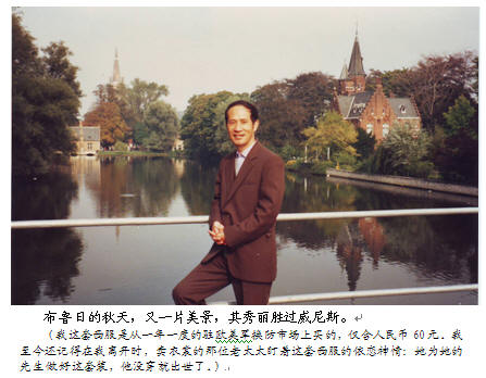 另一位是博士生小高,他夫人也是这里的博士生。由于他搞的语音压缩算法世界领先,一个开发语音处理芯片的电话公司包下他的求学费用和相对丰厚的待遇,并将一辆漂亮的轿车给他使用。我回国前夕,这对夫妻开车带我再次游览了布鲁塞尔。人在异乡他乡闯荡,其性格、心态与能力显得格外重要。