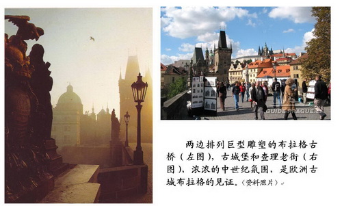 两边排列巨型雕塑的布拉格古桥(左图),古城堡和查理老街(右图),浓浓的中世纪氛围,是欧洲古城布拉格的见证。(资料照片) |