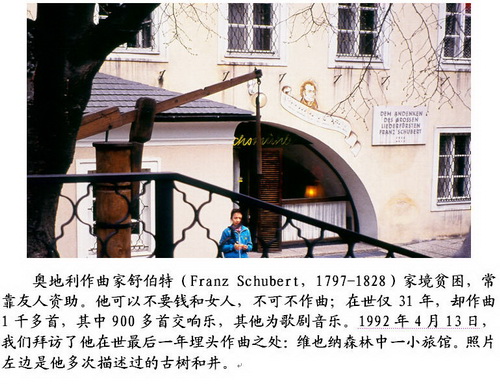 长途跋涉和夜车的疲劳,没有影响大家亲临多瑙河畔音乐之都的欢快心情。加之专业的讲解,大家兴趣昂然,瞻仰了赫赫有名的音乐家海顿、莫扎特、舒伯特和施特劳斯家族的纪念地,及著名的维也纳森林。这片1250平方公里的森林,保持着原始风貌。几个世纪以来,许多音乐家、诗人、画家在此浪漫渡日,美景与人文,激起灵感,产生了不少名扬后世的不朽之作。