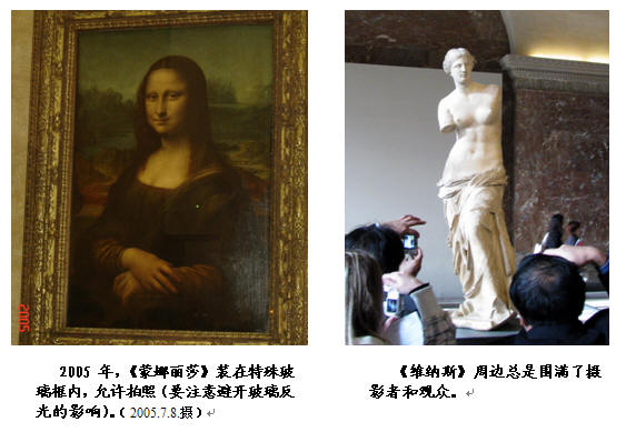 2005年,《蒙娜丽莎》装在特殊玻璃框内,允许拍照(要注意避开玻璃反光的影响)。(2005.7.8.摄) |