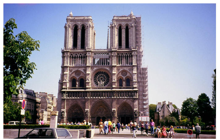 年轻时,我们看过电影《巴黎圣母院》(由大文豪雨果的同名浪漫主义小说改编)。美丽善良的吉普赛姑娘、面目丑陋却心地善良的敲钟人和他们的乞丐朋友们,与道貌岸然、蛇蝎心肠的巴黎圣母院副主教和国王卫队队长,形成尖锐的善与恶、美与丑的对比,展开了一场力量悬殊的浴血厮杀。那刻骨铭心的情节,在巴黎圣母院内外展开。当我们真的站在这宏伟教堂面前时,觉得它既熟悉和亲切,更威严赫赫。