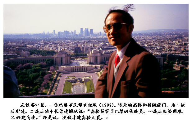 在比利时经历了郁闷的签证危机和半年紧张的课题研究之后,我订了回国机票,一身轻松,开始了盼望已久的巴黎之行。1992年5月11日清晨,为避开签证麻烦,按留学生的指点(类似于1991年从荷兰去德国),我独自一人坐上41路巴士,从蒙斯南下,在一连串秀丽丘陵村庄间绕行(不查护照),来到法国小城莫伯日,改乘火车前往巴黎,开始了我称之“西游首府”的8日游。