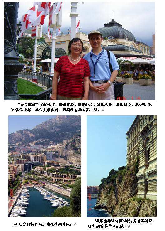 我们坐1欧元的公交车,上到建立在中世纪摩纳哥城悬崖上的皇宫游览,并从那里俯视全城。分布于陡峻海岸边的花园,设计奇特,花儿艳丽。然后,我们步行前往豪华的蒙特卡罗赌城,那是浸泡在阳光、金钱、昂贵香槟和贪婪中的社区。有人告诉给我们,近些年,亚洲(包括中国)富豪在摩纳哥赌场里“异军突起”,很是“雷人”