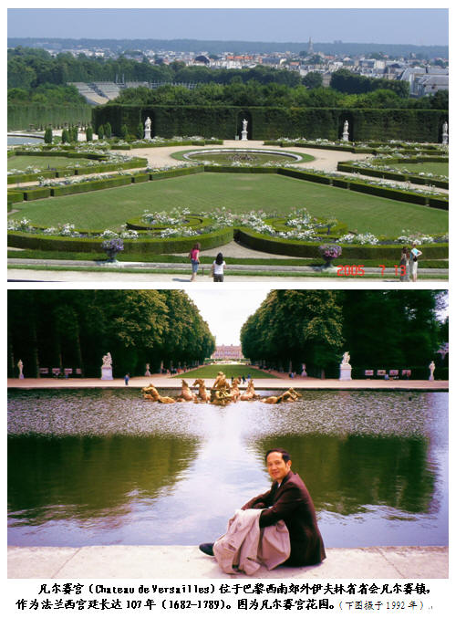凡尔赛宫(Chateau de Versailles)位于巴黎西南郊外伊夫林省省会凡尔赛镇,作为法兰西宫廷长达107年(1682-1789)。图为凡尔赛宫花园。(下图摄于1992年) |