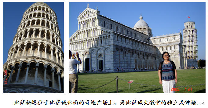 比萨斜塔位于比萨城北面的奇迹广场上,是比萨城大教堂的独立式钟楼。 |