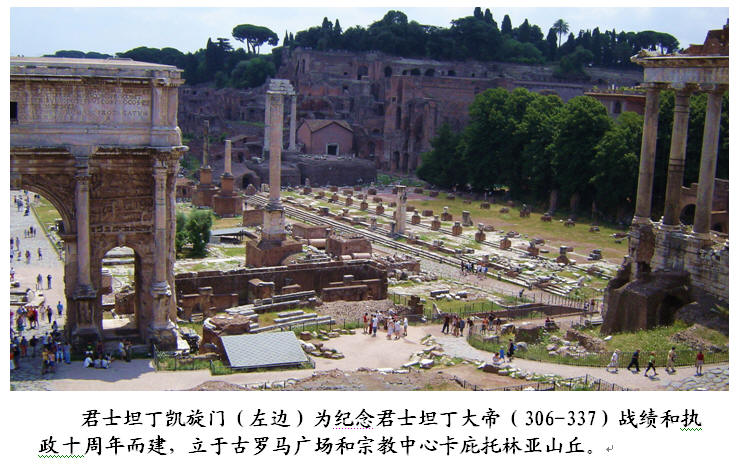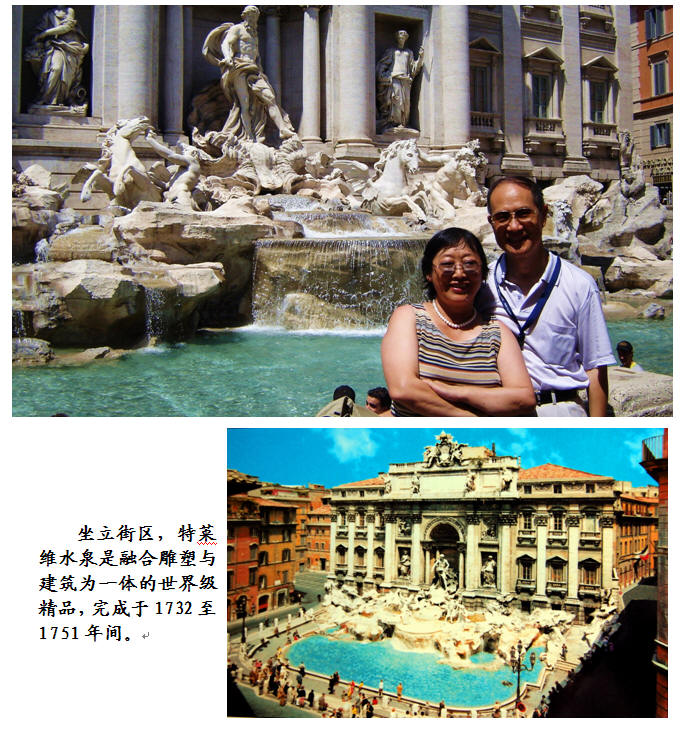 次日晨,我们展开了一个接一个历史遗迹的游览。古罗马市苑遗址(起于公元前56年)、奥古斯都-复仇战神庙遗址(起于公元前32年)、塞蒂米奥·塞韦罗凯旋门(建于公元203年)、特莱维水泉(Fontana di Trevi)等,就在街边;高乐赛奥圆剧场(Colosseum),又名古罗马竞技场、大剧院、角斗场,是一个独特的景点;再次来到圣彼得大教堂。