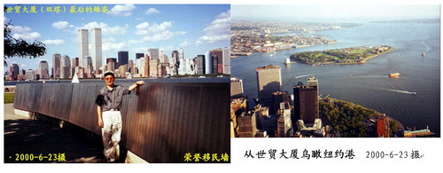 $13)眺望纽约全景,感慨万分。第二年“9-11”早晨,它们被恐怖分子劫持的两架客机冲撞、燃烧、轰然倒塌。“君子报仇十年不晚”:2011.5.1.晚11点35分(美国东部时间)总统奥巴马宣布恐怖基地头目本•拉登被击毙。