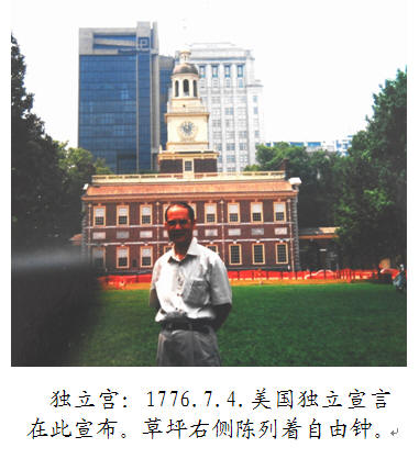 2000年,我来到国家独立公园里的独立宫参观,摸了摸那著名的自由钟,进入卡本特厅(第一次大陆会议的会址)和建于1727年的基督教堂,附近还有弗兰克林墓。海洋博物馆规模可观、内容丰富。