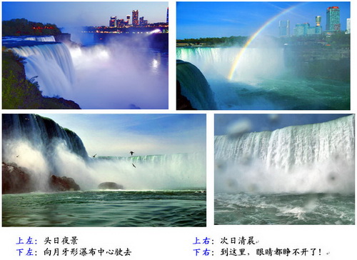 傍晚,终于看到了世界七大奇景之一的尼亚加拉大瀑布(Niagara Falls)和那被溅起100多米高的水珠和迷眩的雾幔。兴奋地人们,看着、按动着相机。
