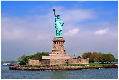 耸立在自由岛上的自由女神像,闪耀着法国艺术独特的光芒和伟大气概。1876年,首先完成的自由女神举起火炬的手臂,送往美国的诞生地、第二个首都费城,参加美国建国100周年纪念和世博会。