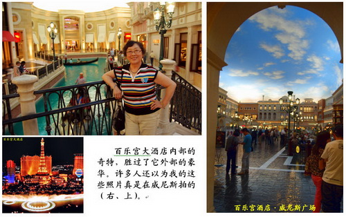 市内有不少非凡的建筑。号称“世界之最”的米高梅酒店,亮丽的绿外包装,有5000个客房。百乐宫大酒店,不仅门前人工湖和喷泉可贵,楼内的水城威尼斯广场实在惊人,肯定是“世界之最”。那“黄金大酒店”的外墙,着实贴了一层真金。