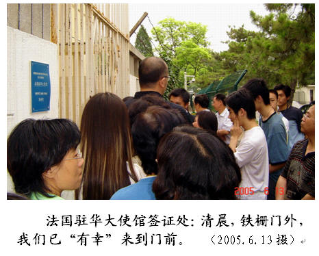 有些漫游感悟,放到哪一章也不很合适,就把它们集中在这里,也算是结束语。 1. 法国驻华大使馆签证处:清晨,铁栅门外,我们已“有幸”来到门前。 (2005.6.13摄) 2000年,我去美国参加会议,国内办理手续历时约两个月,仅在海大各部门盖章达13个之多。房产科还要我签字:如果不回来,学校将没收我家住房!……还要到青岛市外事处、组织部、安全局、中国银行等,办理那些必不可少的批件或信函。 原本是要出席在夏威夷召开的WAC学术会议,签证一再拖延,错过了会期。我的美国朋友Robert帮忙打电话到驻北京美国使馆,也无能为力,回答说“决定权在外交部”。签证下达,已是会期最后一天!——我还是去了,旅游! 办签证,处处给我“求人”的感觉!手续之烦、可恼,使我几次下决心:以后不出国了!但是,时间长了,气慢慢消了,新的动力又驱使自己硬着头皮再去办。 2005年6月13日早晨,我们赶到北京东三街3号法国大使馆签证处时已8点,门前排着近百人的队伍。我们刚从出租车里出来,就有人过来卖‘排队号’。 “你们现在来排队,肯定是办不成。我半夜4点排的队,才拿到10号。你们给200元,把号拿去。”一位30多岁的男子如此叫卖。 钱玲善于还价,用100元买下。 8点40分才开门,进去7~8个人(2~3个号),在不大的办公厅里坐下等候。我们近10点才进入。前面是个3人组,其中一位是国家海洋局的女博士,曾在法国做博士后。她大概没看见厅内贴着‘请关手机’的提示,坐下就打。 一位女签证官生气地喊“打手机的,出去!”年龄稍大、好心的中国管理员在犹豫。女签证官满脸涨红,从办公区小门出来,逼迫那女士出了铁栏杆大门——她白白花费了大量时间与精力,从青岛来到北京。——不知何故,她那两位同伙也被拒签。她们是第二次从山东来办签证!以后得知,拒签率很高。 那天,共有3位签证官办公。我希望不要遇到刚才那位很凶的女签证官和我们面谈。结果,正好轮到她! 我很快发现,担心是多余的,她对老年人很客气。她以中文、英文夹杂的方式问了几个问题,涉及我去巴黎参加会议的主题、家庭成员情况、是否去过法国等。 “这个(户口)要翻译,这些(存款证明等)要复印,原件你们留着有用。就在门外有人替你们做,我等你们。”半小时后,我交给办事公司100元,缴签证费每人367元。 “好了,没事了。下周一下午来取签证。” 出来时,已是11点,门外还有10~20人等候。有些人可能要白等了:12点钟就不办了。 2009年,我们在“女人街”附近(不是大使馆所在地)找到了美国大使馆签证处,是一栋新大楼,很气派。但是,没有申办者的座位!无论年龄多大,身体状况如何,都必须长时间站着。这似乎是在说:你经受不了这个考验,就别去美国了! 那年,签证费为900元,2011年长到1000元。以每天约2500人计算(大概与在上海的美国签证处情况差不多),每天收入250万元;一月按20天算,月收5000万元。北京、上海两处,一年美国人拿走约6·2 = 12亿!说起来,这是“对等的”:美国人来中国的签证费也这些。但是,有多少美国人办中国签证? 签证,还带动了周边“办事公司”、邮递、小吃、排队号“代理”、机票预定与航班广告等行业。真可谓宏大的“签证产业”! 我们很快收到了由家在北京的大哥代取、邮寄来的签证,签证有效期为一年。 说起老百姓“出国”,这观念与态势的变化也很大。 早年,凡非国家派遣,老百姓自己出国,都被视为“叛国”。例如,上世纪60年代,我们教研室有位北京大学来的青年教师谢友匡。他父亲通过中央领导人廖承志办好了出国手续。他走的时候,同事们不敢去送他:他“叛国”了。 一直到90年代,我们国家还是怕国人“跑了”,给出国作了种种限制。我在荷兰工作时,想让钱玲出国玩玩(当时别无出国旅游途径)。想尽了办法,我们双方的单位就是不同意——她成了“人质”。 再往后,我们国家政府想通了,放宽了,可是,外国不干了:怕你移民!(这担心也算有根据。)因此,出国旅游要各种担保,“无理拒签”的情况多了。 2. 大学比较 92年我刚回国,海大秦副校长一次认真地问我:“你刚回来,脑子里对比鲜明。你说说,我们大学与他们的最大差距是什么?设备?师资?学生素质?” “不是这些。我假想过:从我的同事中选20人,取代豪克斯实验室原班人马。我估计,一年便可达到他们的水平。”我的回答使他十分诧异。“最大差距在体制与管理方面。” 您想:一个室主任,可轻而易举地化解我两次签证危机。他不仅可决定雇谁,还能直接打电话到外交部,要求立即为我办签证。不足一天时间,我便在新加坡拿到了荷兰签证! “您出国办签证,是怎么办的?要花多少时间呢?”我问…… 显然,在他们那里,实验室是大学的基础与实体;室主任权力之大、效率之高,对我们而言是不可思议的。 麻省理工学院(MIT)的法拉第(Faraday, 1791-1867)门上刻着: 奥斯特(Oersted, 1777- 1851) 马克斯韦尔(Maxwell, 1831-1879) 赫兹(Hertz,1887-1975)等物理学家、电磁学奠基人的名字。 财务报销,乃小事一桩,却也显示出体制与管理的巨大差异。 我在欧洲曾两度参加国际会议。豪克斯依实际情况,直接把钱汇到我的银行账号;事前事后,没有任何报销手续。与我交谈的海大财务科会计也说“这办法好,但是……。”海大财务处(审计处不算)工作人员就有30多位!——事实上,我们“严格的”报销制度,使老实人很烦,让腐败和贪官通行。 荷兰TU是20世纪60年代新建