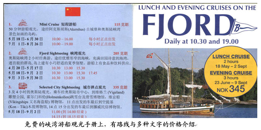 没想到,我回到青岛家中偶然细看,手册上面印有当年、当月、当日的价格,两小时游船价格是205克朗,合26欧元!我们火了:导游怎么如此骗人?!