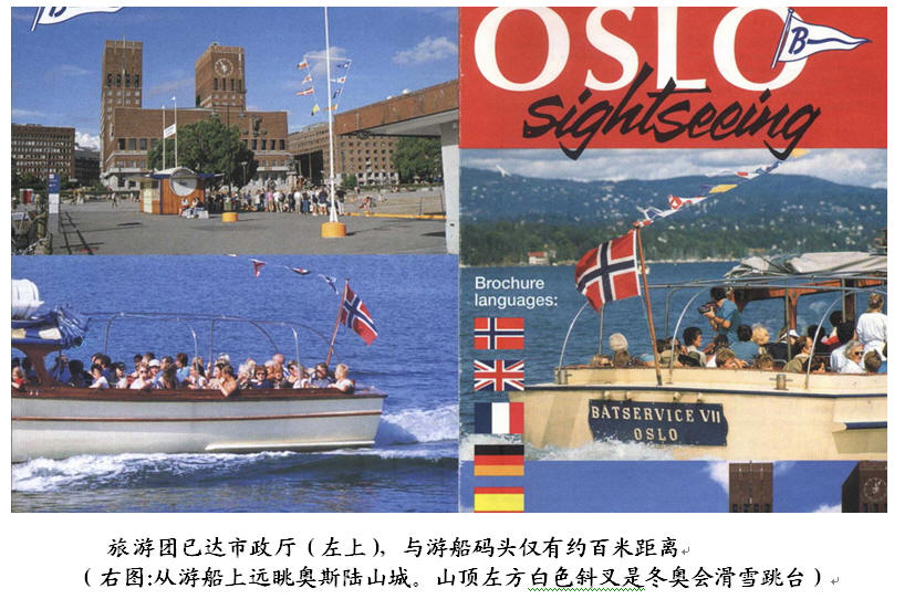 我反驳:“瞎说。在那之前,旅游团已到达前一个景点:奥斯陆市政厅,离船码头不足100米,步行10分钟可到,根本没有坐汽车!”