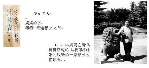 1967年妈妈在青岛玩得很高兴,与我即将结婚的钱玲的一家相处也很融洽。 |