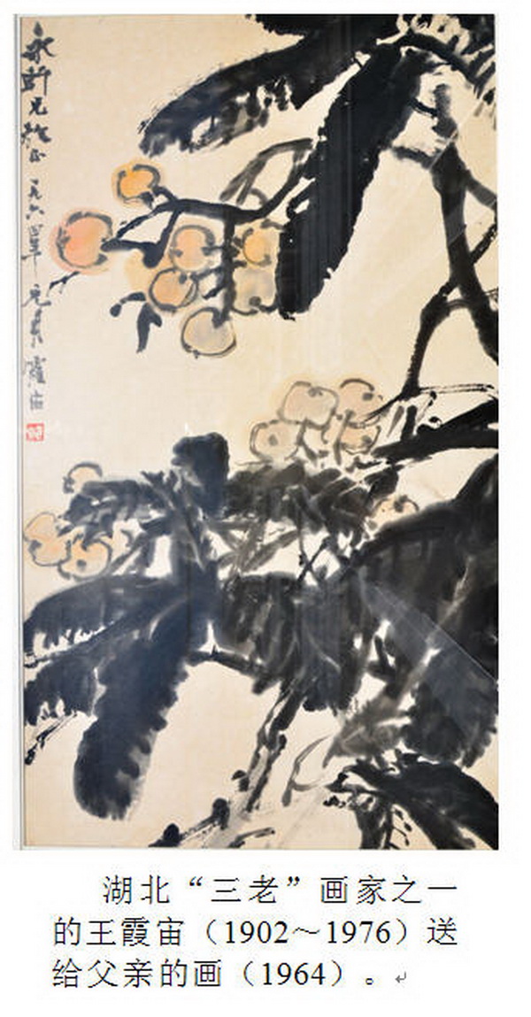 湖北“三老”画家之一的王霞宙(1902~1976)送给父亲的画(1964)。 |