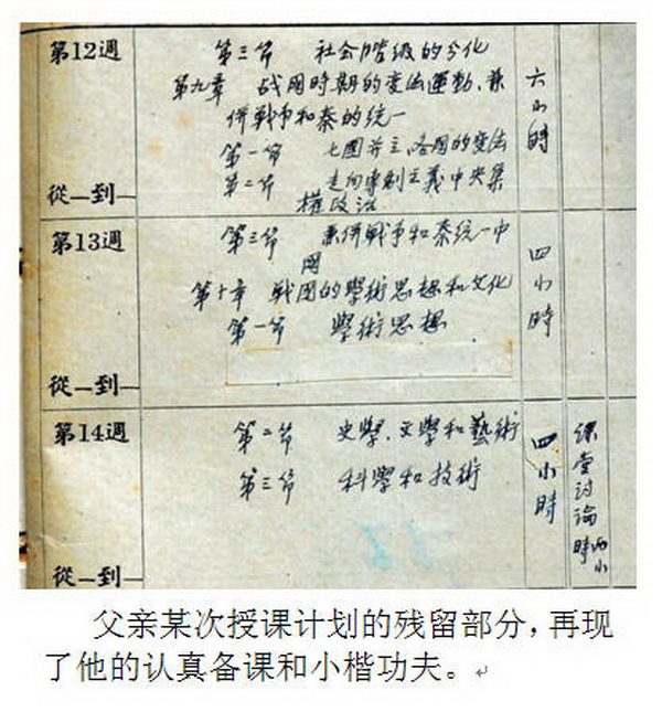 父亲某次授课计划的残留部分,再现了他的认真备课和小楷功夫。 |