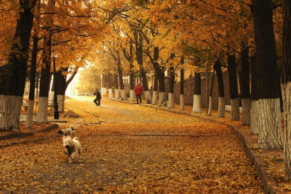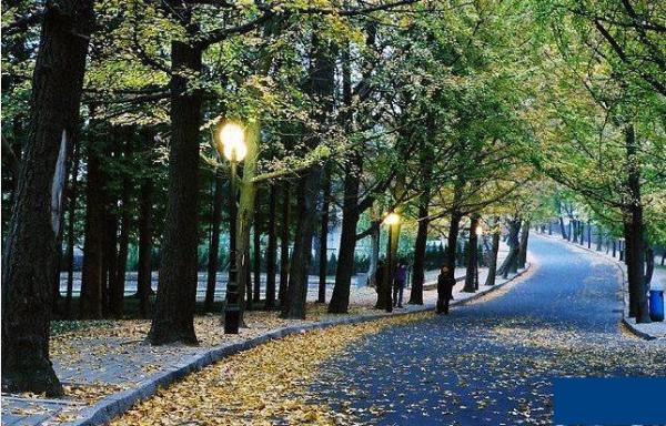 落叶知秋的时节, 嘉峪关路红色的枫叶与居庸关路黄色的银杏叶是八大关最著名的两大景观.