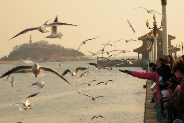 栈桥是看海鸥的好地方,来青岛,看海鸥吧.