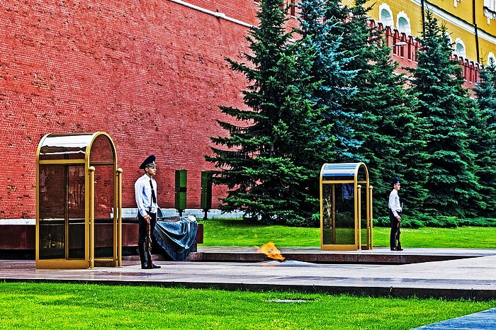 位于红场西北侧的无名烈士墓。墓碑上刻着“我们不记得你们的名字,但我们记得你们所做的事情。”陵墓前的长明火,一直在燃烧,从不熄灭,寓意英烈们永垂不朽