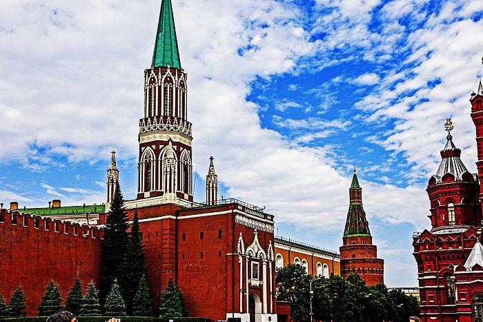 红墙上看见的克里姆林宫塔楼