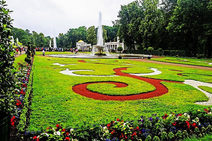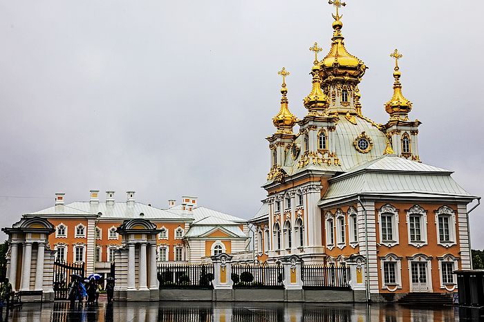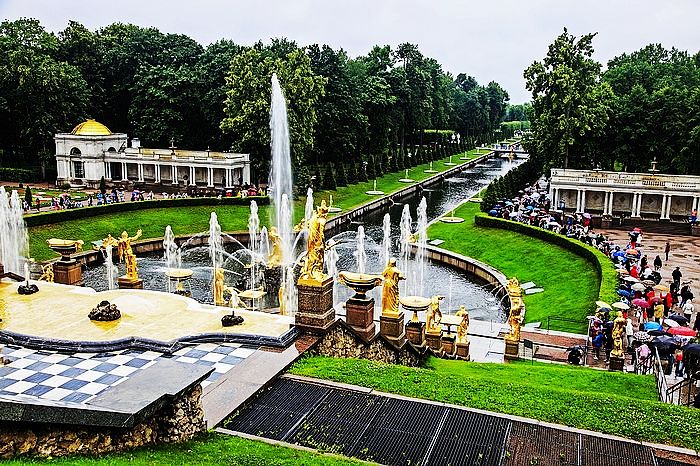 17 夏宫的大宫殿。夏宫由大宫殿、法式上花园和200多个喷泉的下花园组成,是历代沙皇举行宫廷庆典和大型舞会的地方。大宫殿是彼得大帝的皇宫,当时彼得大帝住一楼,叶卡捷琳娜皇后住二楼。