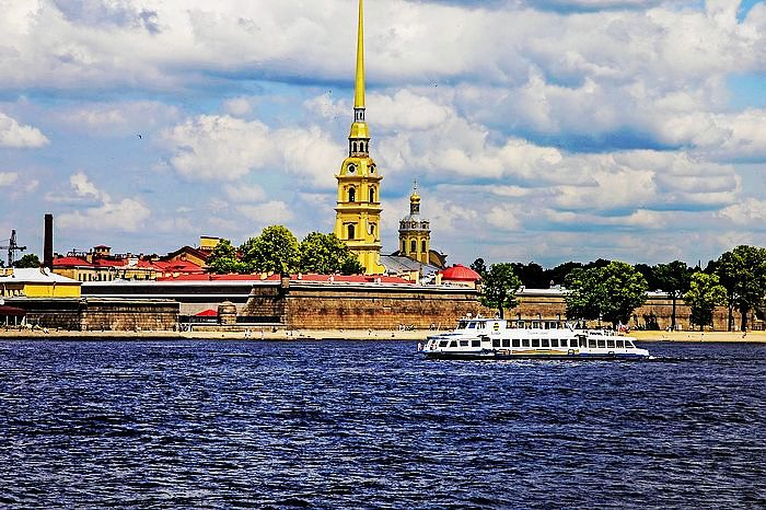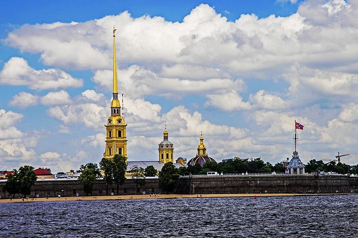 23 彼得保罗要塞。在宽阔的涅瓦河湾,“游弋”着一艘仿若神话中的帆船的小岛——扎亚奇岛(兔子岛),彼得保罗要塞 1703年5月16日由彼得大帝在兔子岛上奠基,它与彼得堡同龄。岛上教堂钟楼的金色尖顶像是帆船的桅樯,直刺云霄,在阳光下熠熠闪烁。这就是圣彼得堡最著名的标志性建筑之一——彼得保罗大教堂。彼得一世以圣徒彼得的名字为要塞命名,称圣彼得堡。有趣的是,教堂的名字逐渐被人们惯用称呼要塞,而圣彼得堡却成为在要塞护佑下诞生的城市的名字。。。