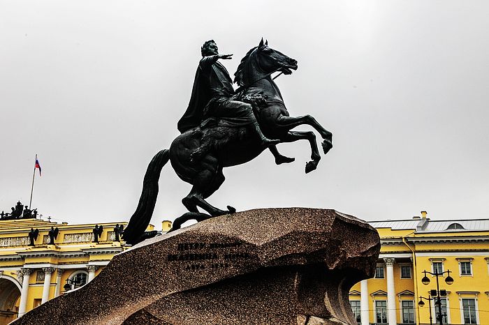 7 青铜骑士像:坐落于十二月党人广场上的青铜骑士像,是彼得大帝的雕像,雕像淋漓尽致地展现了彼得大帝作为沙俄帝国的缔造者、改革者、立法者无坚不摧、勇往直前的雄姿,是世界上纪念性雕塑最完美的作品之一。雕像因普希金的抒情诗《青铜骑士》而得名。