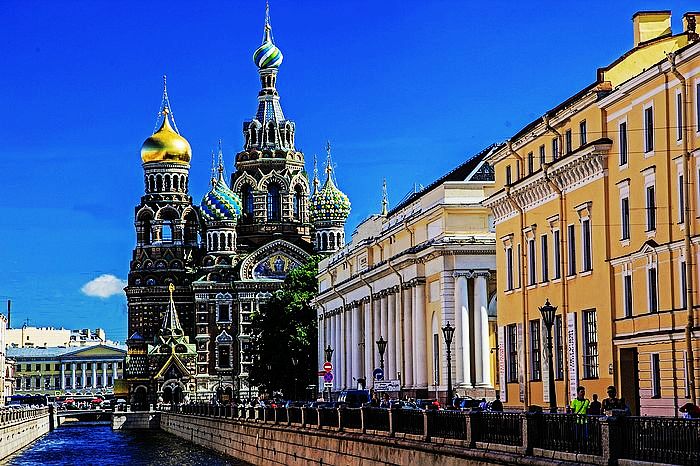 圣彼得堡,我们更记得她叫“列宁格勒“。在这里有打响十月革命第一炮的阿芙格尔巡洋舰,有“列宁在十月”胜利攻占了的那个”冬宫“。在二战中,英雄的列宁格勒军民,进行了可歌可泣的、长达900天的"列宁格勒保卫战",不但守住列宁格勒,而且于1944年1月14日转入战略反攻。列宁格勒保卫战让全世界人民记住了列宁格勒,列宁格勒是俄罗斯民族的骄傲! 圣彼得堡(列宁格勒)坐落在波罗的海芬兰湾东岸,涅瓦河河口。整个城市由100多个岛屿组成,由700多座桥梁连接起来,由于河渠纵横、岛屿错落、风光旖旎,素有“北方威尼斯”之称。