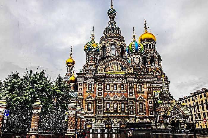 9 滴血教堂。亚历山大三世为纪念父皇,在其父遇刺的地点修造这座教堂,称“滴血教堂”,也称“复活教堂”。滴血教堂外部和内部装修都十分艳丽,加上教堂顶部色彩鲜艳的“洋葱头”,显得十分醒目,是圣彼得堡市少有的纯俄罗斯风格的教堂。