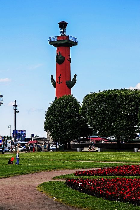 22 瓦西里岛的港口广场两侧,耸立着两根船头形装饰的圆柱----海神柱