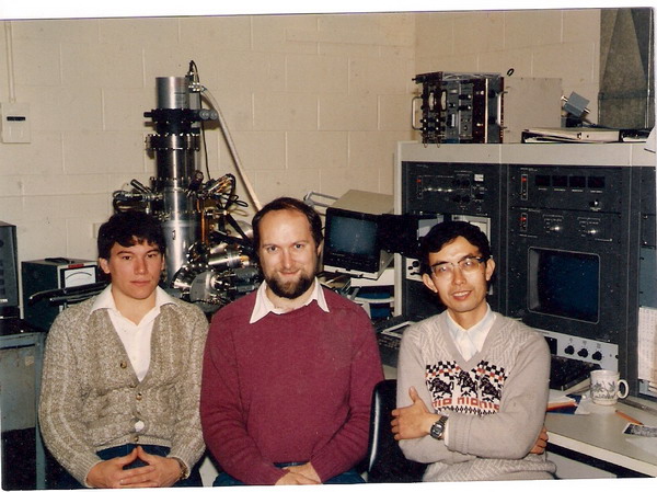 俄歇电镜室。左为Frank,中间是我的导师R. Underhill。