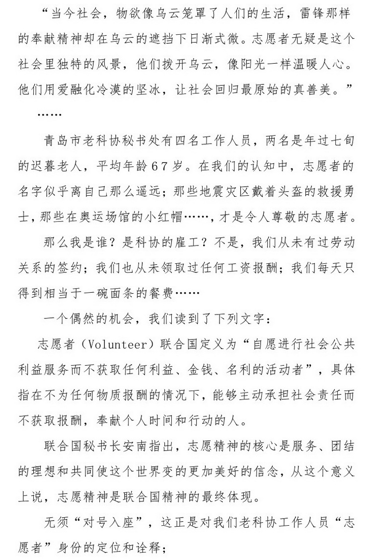 青岛市老科学技术工作者协会(简称:青岛市老科协);本协会是以我市离退休的老科技工作者和老科技工作者团体为主体自愿结成并依法登记成立的非营利性、全市性法人社会团体,是青岛市老科技工作者的群众组织,是青岛市科学技术协会和老龄事业的组成部分,是党和政府联系老科技工作者的桥梁和纽带。